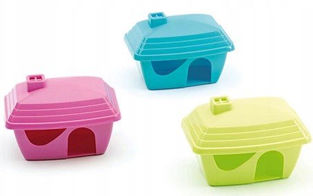 Przytulny domek dla małego zwierzaka wykonany z tworzywa sztucznego.