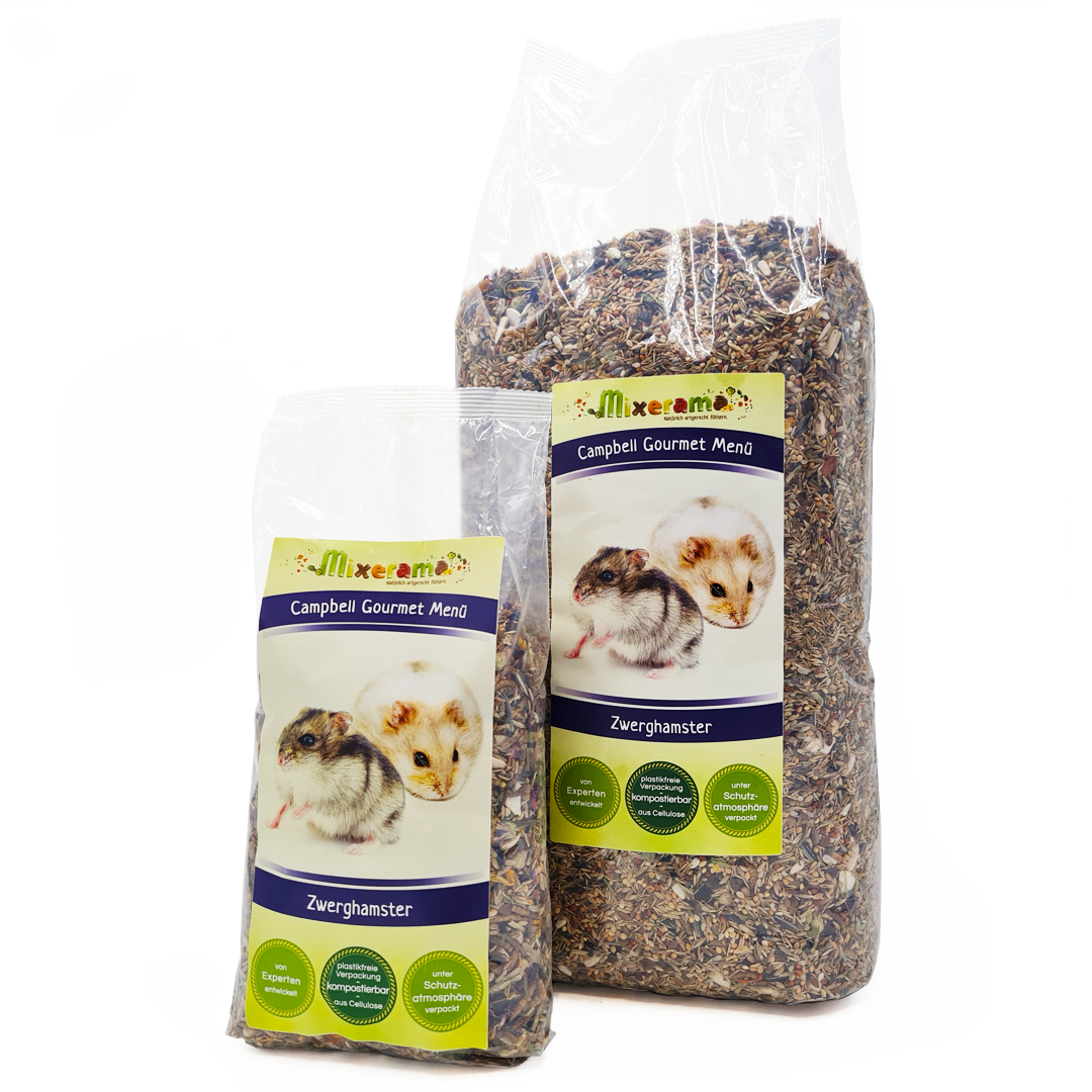 Karma Campbell Gourmet Menü jest pełnoporcjową, zbilansowaną mieszanką dla chomików Campbella oraz hybryd marki Mixerama.