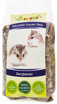 Karma DRoborowski Gourmet Menü jest pełnoporcjową, zbilansowaną mieszanką dla chomików Roborowskiego marki Mixerama.
