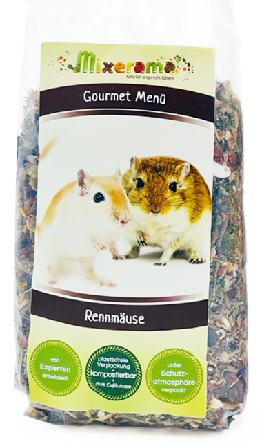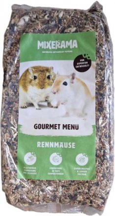 Karma Gourmet Menü jest pełnoporcjową, zbilansowaną mieszanką dla myszoskoczka marki Mixerama. Menu dla smakoszy zostało stworzone do zaspokajania specjalnych potrzeb żywieniowych suwaków mongolskich.