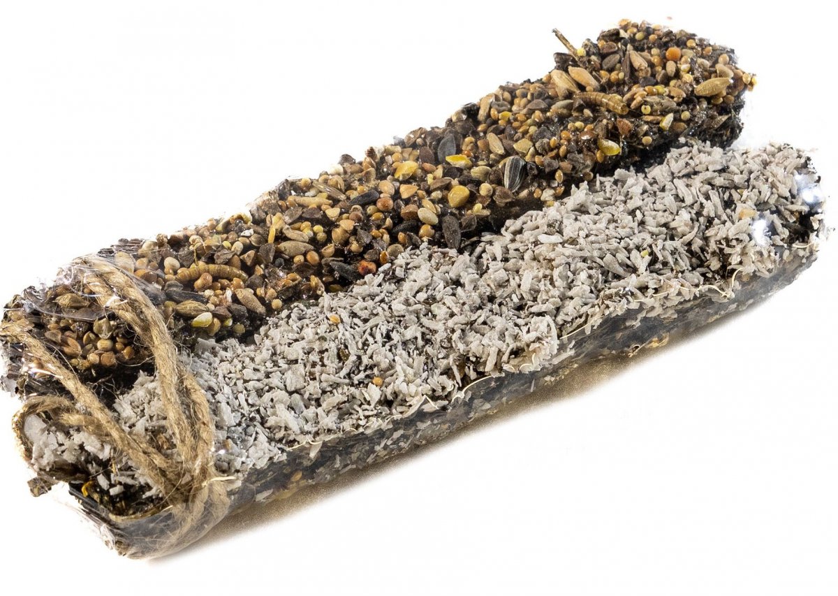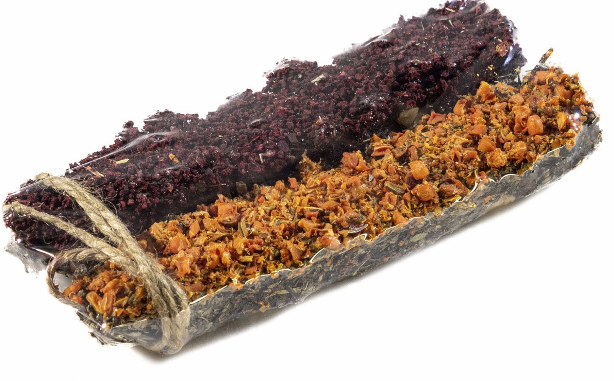 Skład: orzechy archaidowe, larwy mącznika, mniszek lekarski, babka lancetowata, wiórki kokosowe, siemię lniane, pokrzywa, jeżówka, krokosz barwierski, sorgo, koniczyna, nasiona konopi, lucerna, mięta, rzepak czarny, liść brzozy, melisa, słonecznik łuskany, mozga kanaryjska, proso, ryż paddy, gryka zwyczajna, nagietek, skrobia.