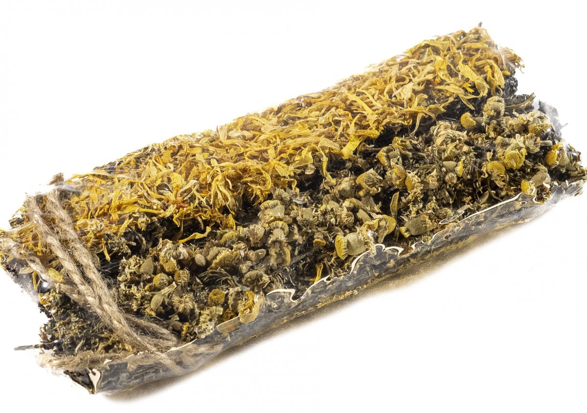 Skład: Rumianek, nagietek, kocanka, ślaz, mniszek lekarski, babka lancetowata, pokrzywa, pietruszka, jeżówka, koniczyna, lucerna, mięta, liść brzozy, melisa, liść lipy, skrobia.