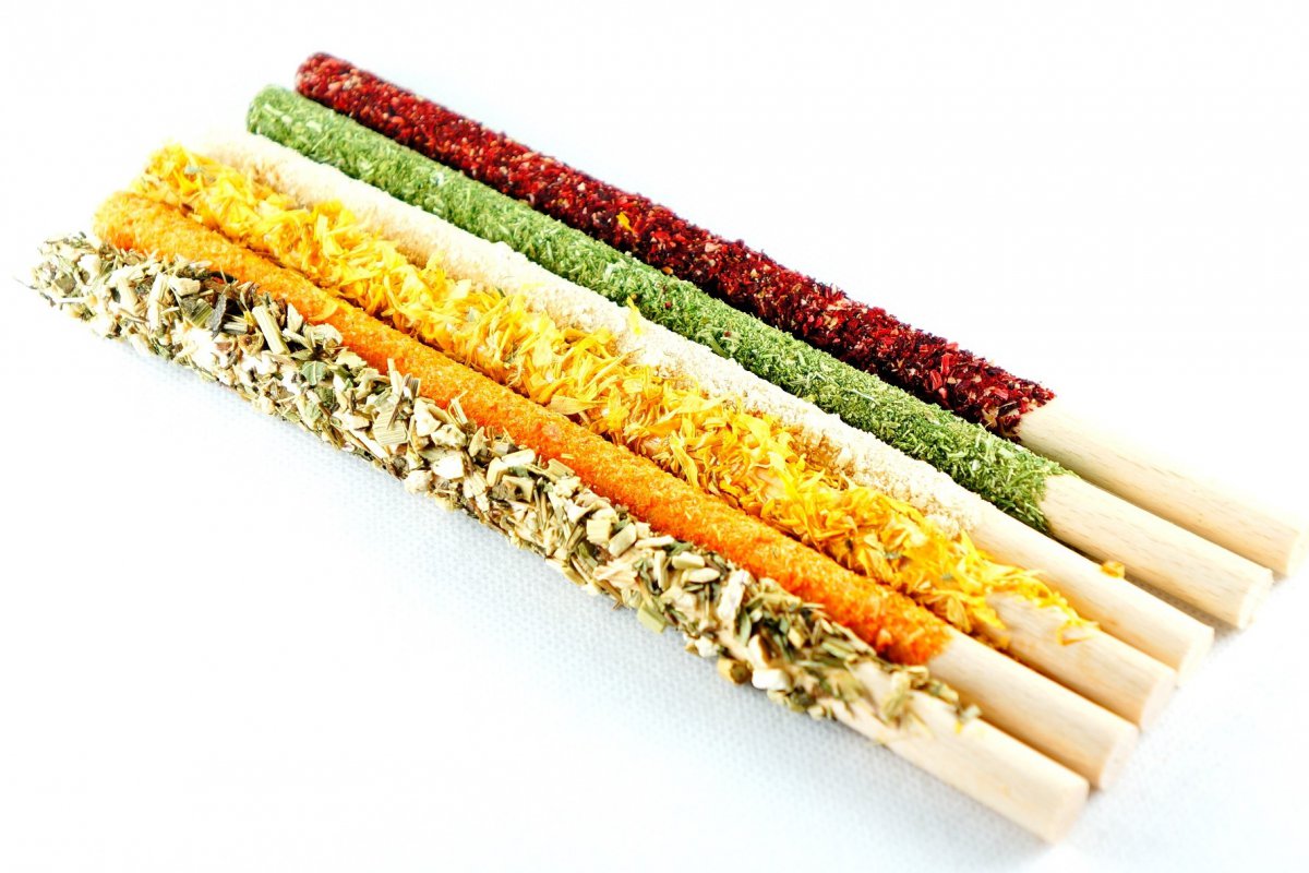 Skład: drewno bukowe, jeżówka, marchew, pasternak, hibiskus, nagietek, pietruszka, skrobia.