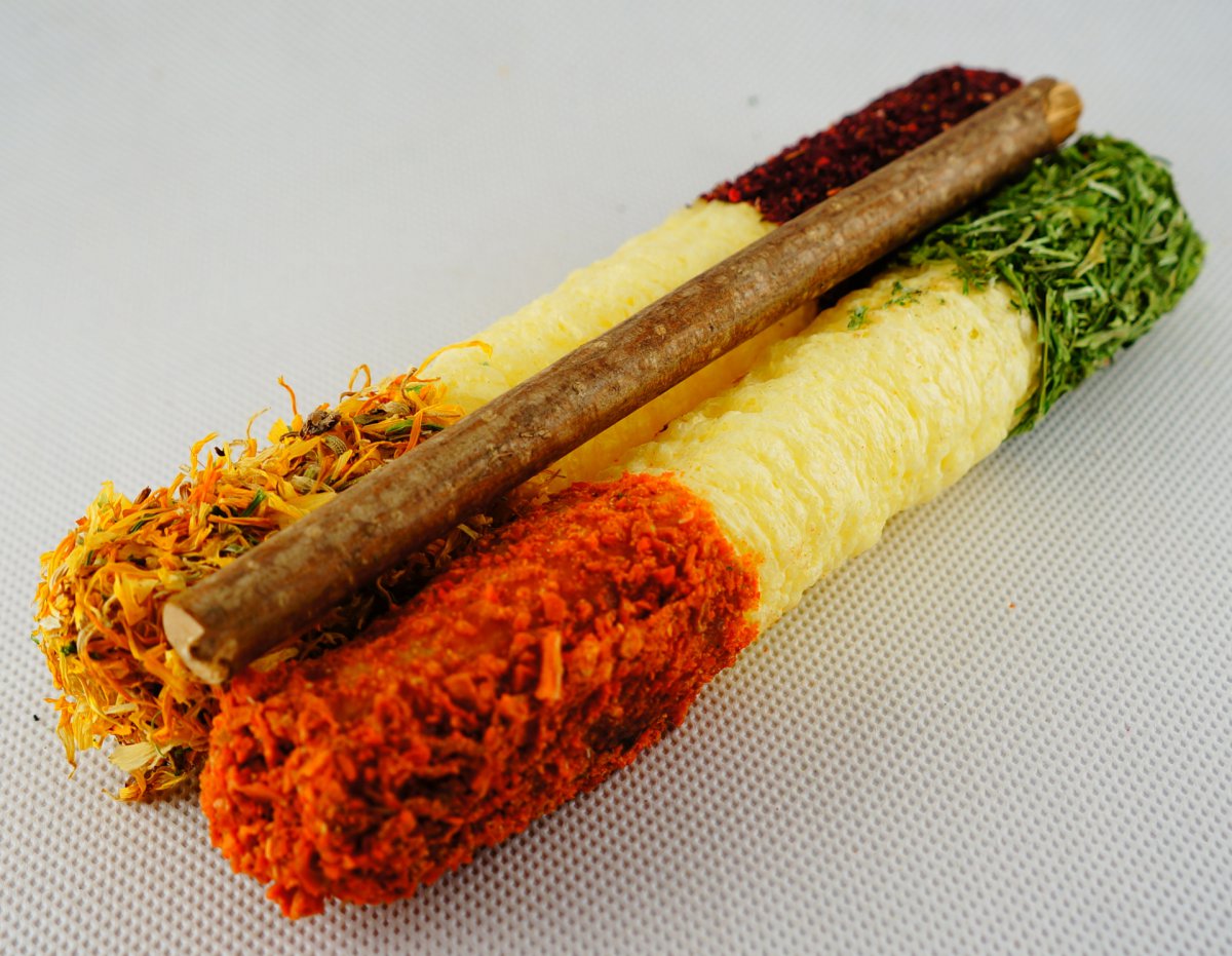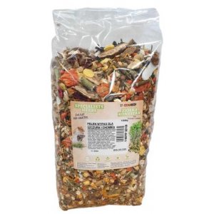 Skład: kasza kukurydziana, marchew, hibiskus, nagietek, pietruszka, leszczyna, skrobia.