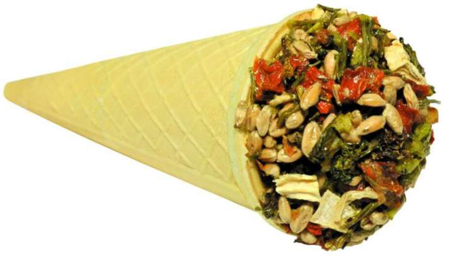 Przekąska uzupełniająca dietę w kształcie lodowego rożka.