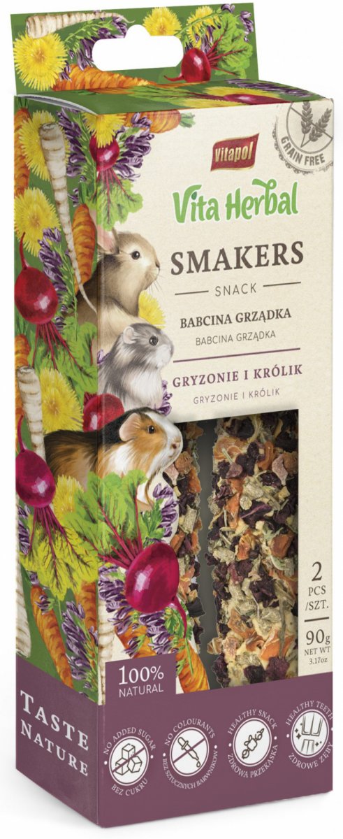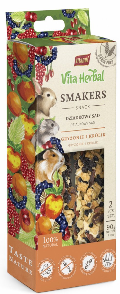 UWAGA PRZY ZAKUPIE 2 szt. : Smakers Vitapol Vita Herbal - 1 opakowanie Vitapol Smakers dla gryzoni i królika - Dziadkowy sad 90g GRATIS*