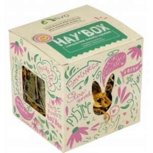 Hay’Box to w pełni jadalna zabawka, wypełniona naszym siankiem luksusowym z dodatkiem mniszka lekarskiego i nagietka.