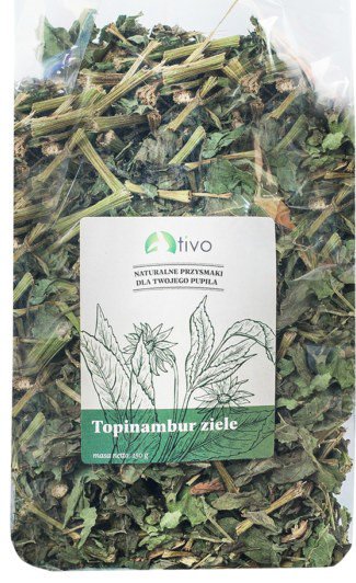Ziele topinamburu to zioło, które każdemu zwierzakowi przypadnie do gustu. Ziele zawiera zarówno liście jak i łodygę. Jest bogate we włókno i korzystnie wpływa na proces trawienia.