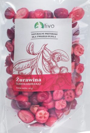 Żurawina liofilizowana. Bez cukru, bez konserwantów, bez sztucznych barwników. Naturalny smak, aromat