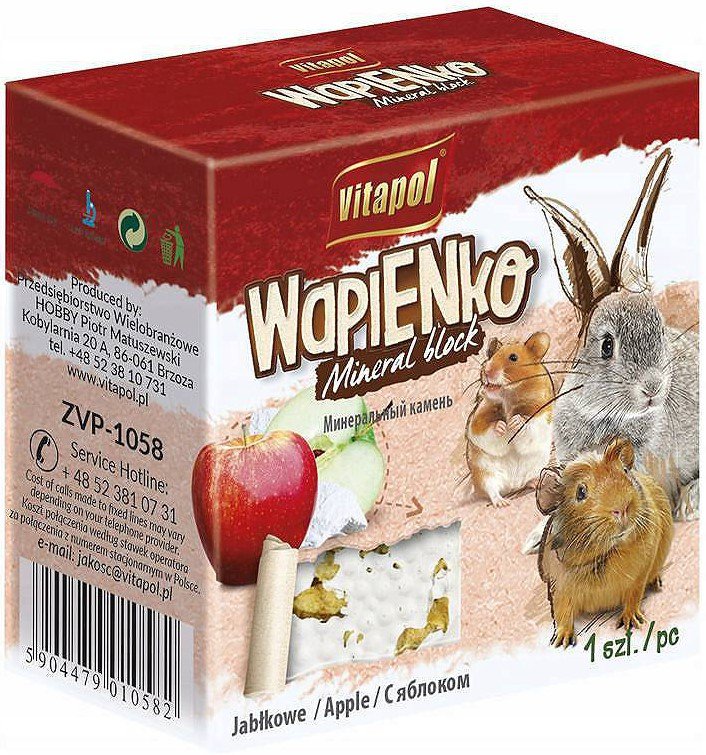 Kostka wapienna to idealne uzupełnienie codziennej diety w wapń. Minerał ten jest niezbędny do prawidłowego wzrostu zębów, kości oraz innych struktur wymagających obecności wapnia. Odpowiednio dobrana twardość umożliwia królikom i gryzoniom ścieranie zębów. Zapobiega również występowaniu krzywicy i karłowatości. Należy podawać każdego dnia.
