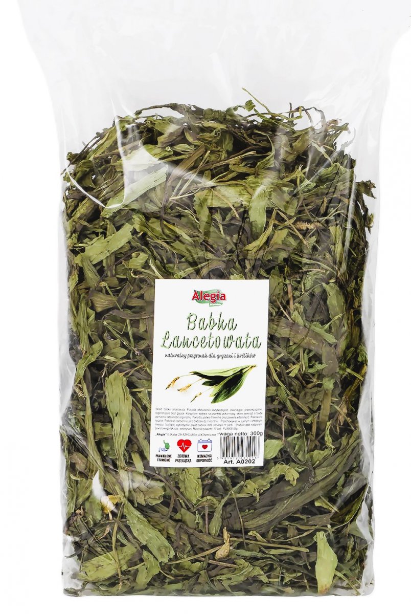 Babka lancetowata to cenny składnik diety królików i gryzoni, bogaty w witaminę C oraz aktywne związki, które zwiększają i rozrzedzają wydzielinę w oskrzelach, ułatwiając oczyszczanie dróg oddechowych. Roślina stymuluje także wydzielanie soków żołądkowych, co wspomaga trawienie.