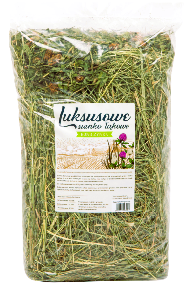 Dzięki dodatkowi koniczyny sianko zyskuje lekko słodki smak, który zwierzęta uwielbiają. Jest bogate w błonnik, wspomaga trawienie i naturalne ścieranie zębów, a przy tym stanowi cenne źródło roślinnych białek i witamin.