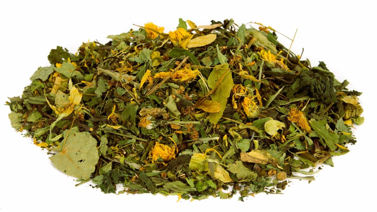 Skład: babka lancetowata, ziele mniszka, mięta ziele, melisa ziele, pokrzywa ziele, krwawnik ziele, nagietek kwiat, liść brzozy