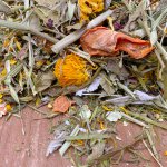 Skład: Łodygi pietruszki, zielony owies, płatki grochu, płatki bobiku, łodygi kopru, kwiaty nagietka, babka zwyczajna, plaster marchwi, buraki liście śliwy mirabelki, liście malin, kwiaty rumianku, liście mięty pieprzowej.
