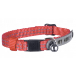 Nylonowa obroża odblaskowa z adresem i dzwoneczkiem dla kota.
