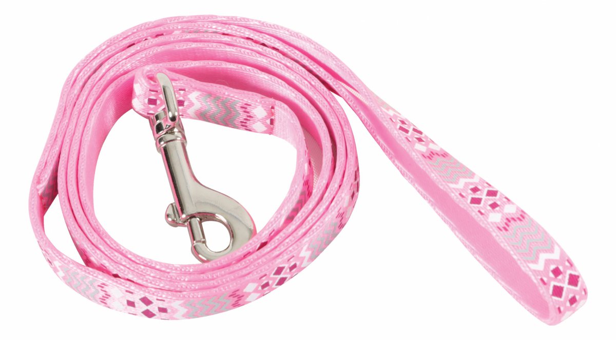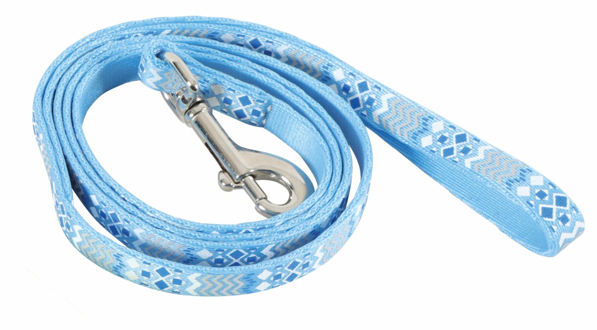 Smycz ETHNIC wyprodukowana z łatwego do utrzymania nylonu wyposażona została w metalowy karabińczyk, zwiększający bezpieczeństwo pupila podczas spacerów. Oryginalny odblaskowy wzór poprawia widoczność.