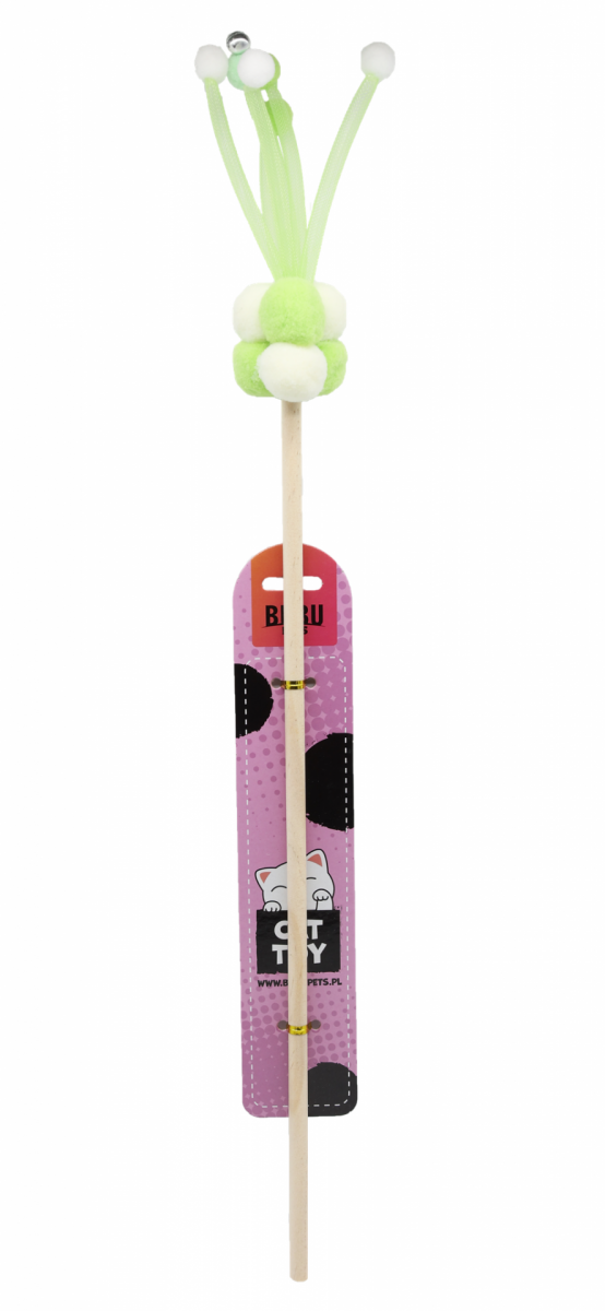 Bubu Pets | Zabawka dla kota | Drewniana wędka z bąbelkową piłką 38-54cm