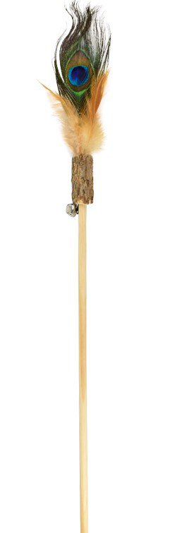 Bubu Pets | Zabawka dla kota | Drewniana wędka z kłodą i pawim piórem 38-58cm