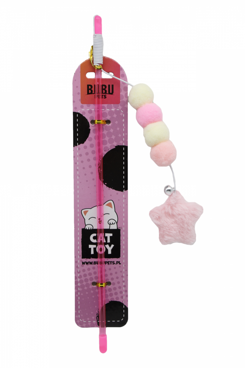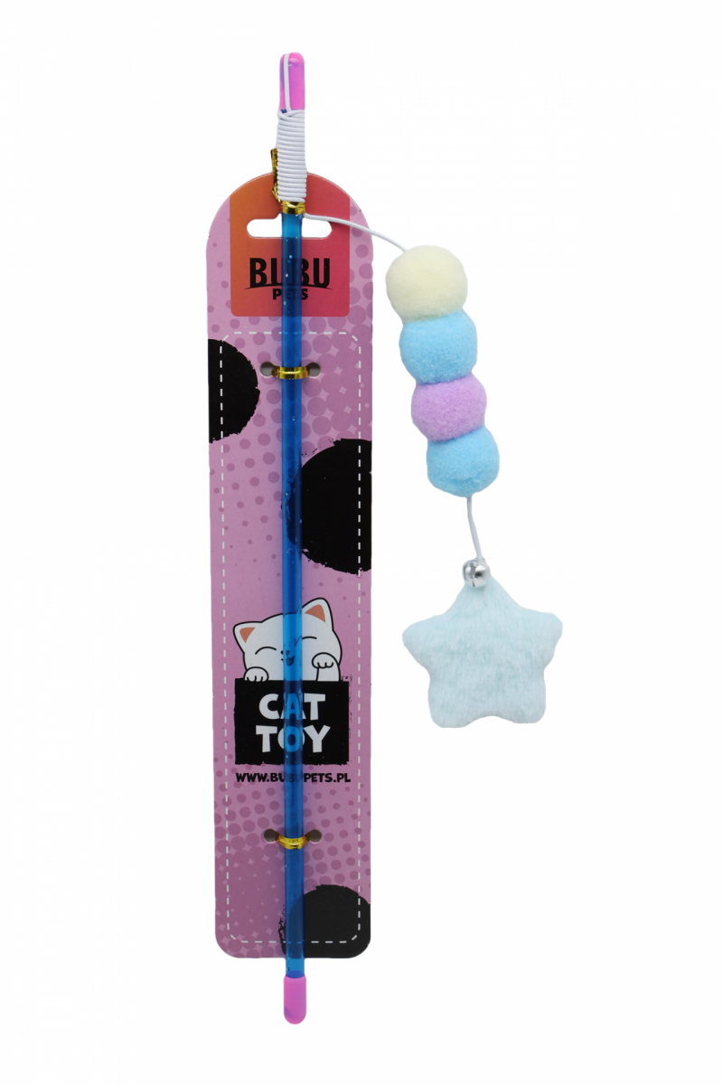 Bubu Pets | Zabawka dla kota | Plastikowa wędka z linką i pluszową gwiazdką 31-47cm