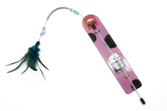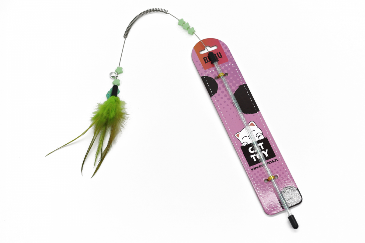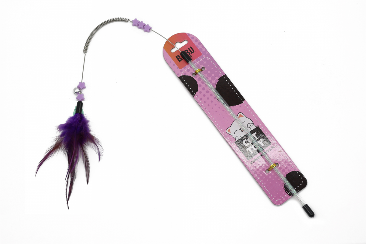 Bubu Pets | Zabawka dla kota | Wędka z wielokolorowym piórem i sprężyną 60cm