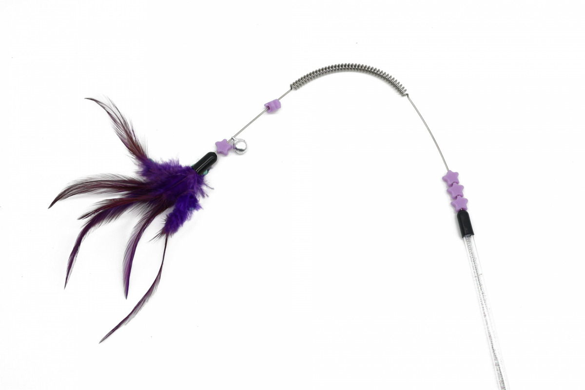 Bubu Pets | Zabawka dla kota | wędka z wielokolorowym piórem i sprężyną 60cm