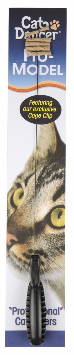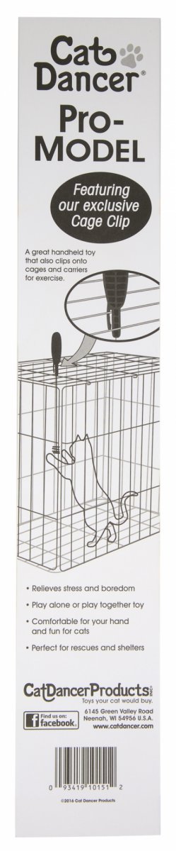 Marka Cat Dancer skupia się na różnych aspektach życia kotów. I tak z potrzeby serca powstała wersja Pro-Model. Choć wygląda ona jak zwykła wędka dla kota to jest to bardzo niezwykła wędka. Posiada bowiem specjalnie opracowany uchwyt, który umożliwia zaczepienie wędki do pręcika klatki lub transportera. Dlaczego jest to ważne? Dlatego aby kot podczas zamknięcia miał zajęcie, czuł mniejszy stres lub po prostu miło spędził czas.