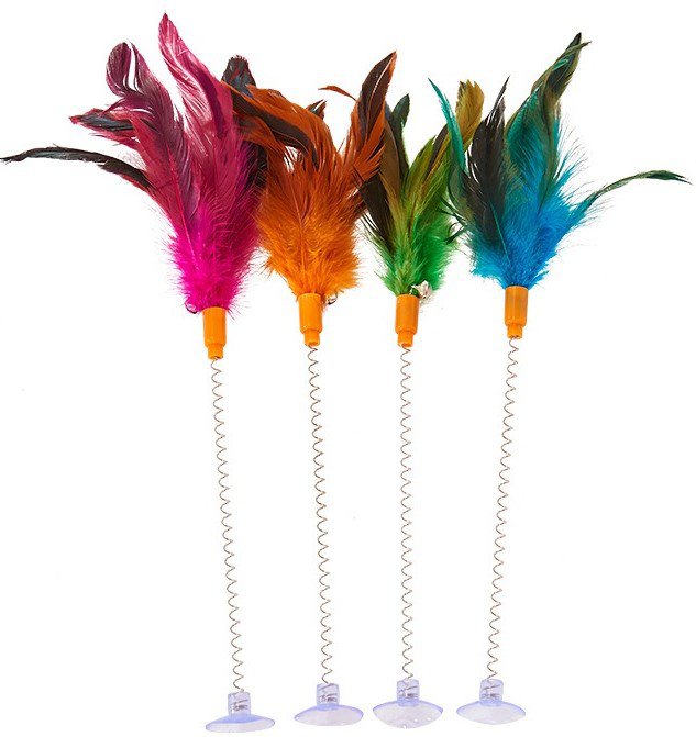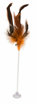 Piórka wędki wraz z dzwoneczkiem są zamocowane na długiej, metalowej sprężynie. Wędka posiada w zestawie przyssawkę, dzięki której można ją przymocować do płaskiej powierzchni, by kot mógł się nią bawić bez angażowania w to swojego opiekuna :)