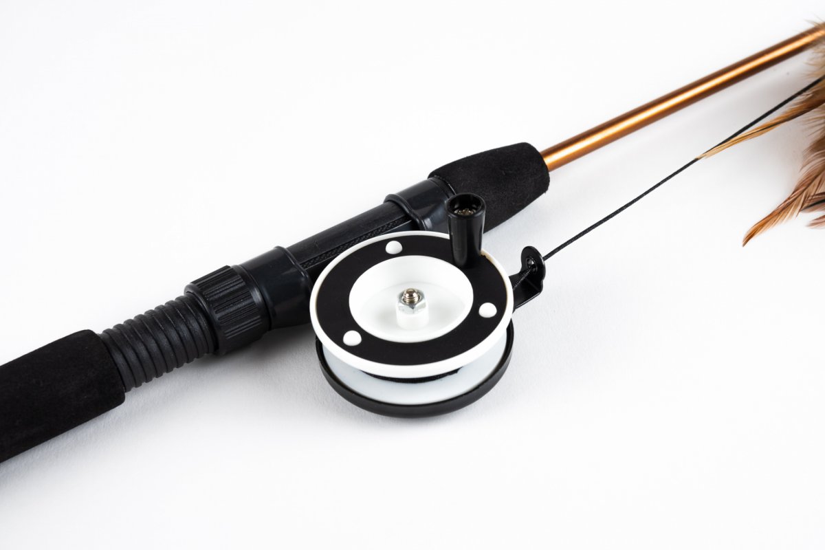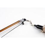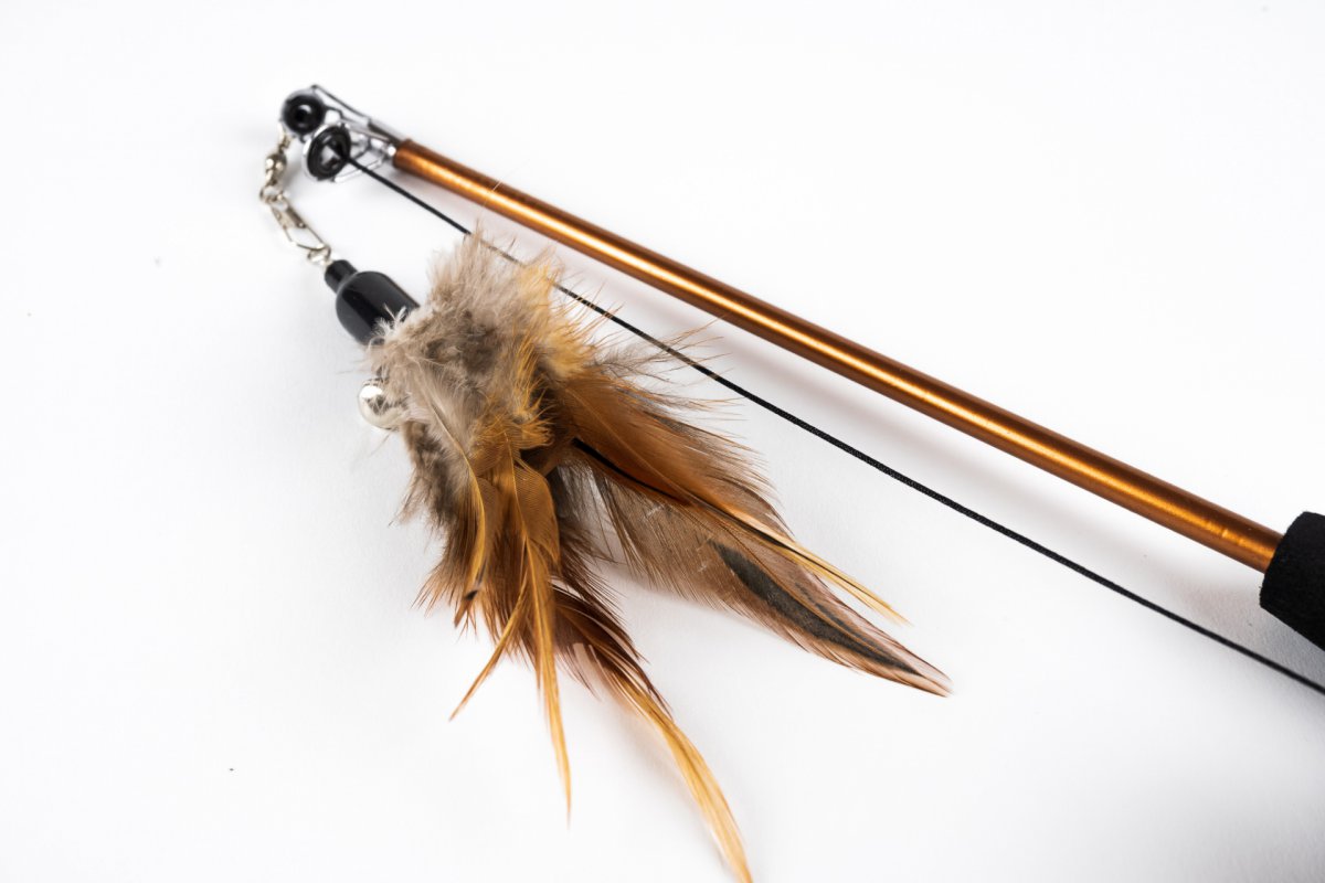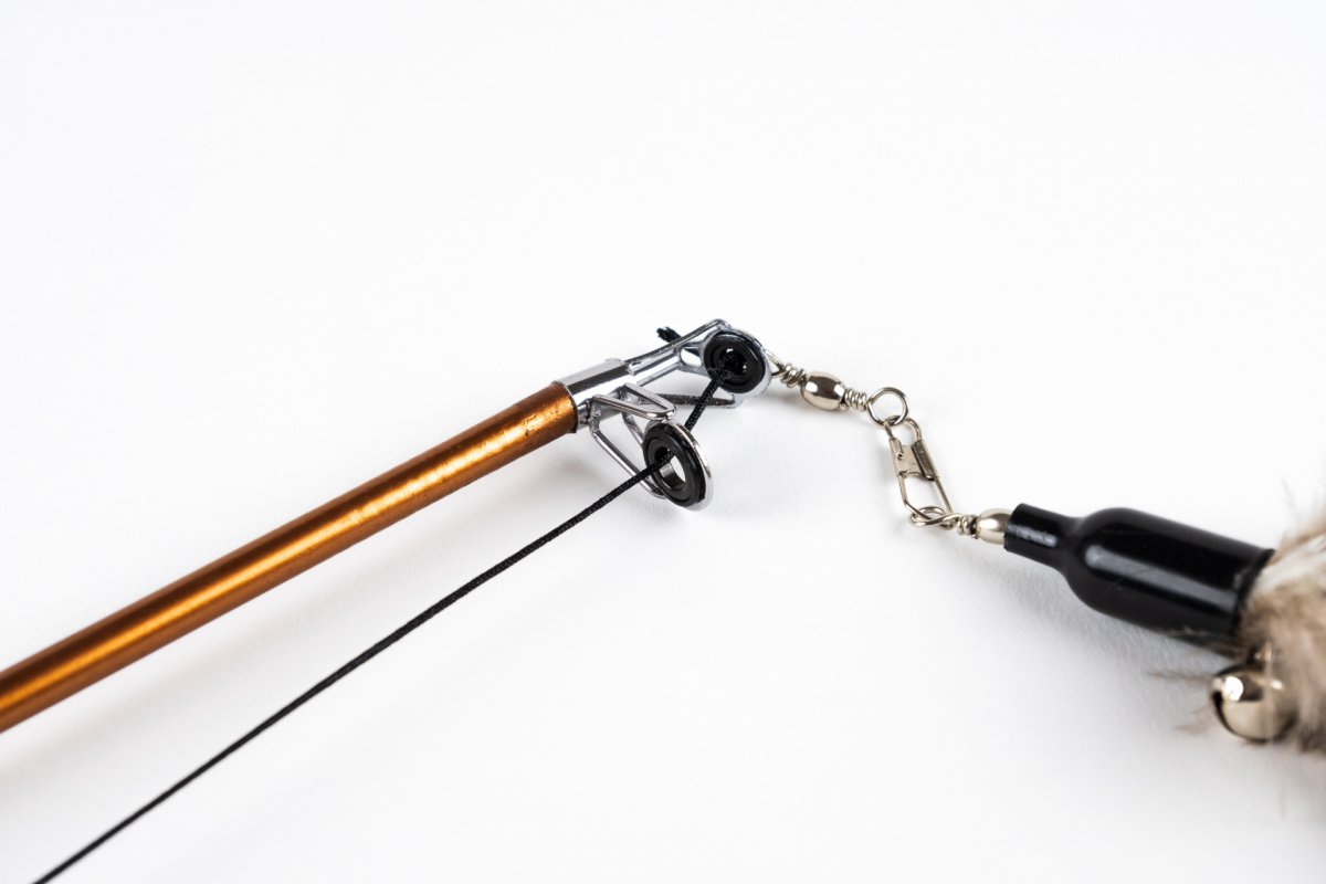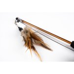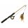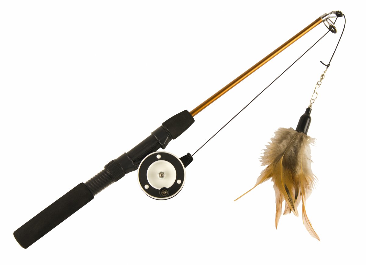 Plastikowa wędka z piankową rękojeścą i piórkami z dzwoneczkiem na sznurku. Dzięki wysuwanej końcówce wędka osiąga nawet 70cm. Kołowrotek posiada mechanizm blokujący, który umożliwia zatrzmanie rozwijania linki i pozwala na prawdziwe "łowienie" kota :)