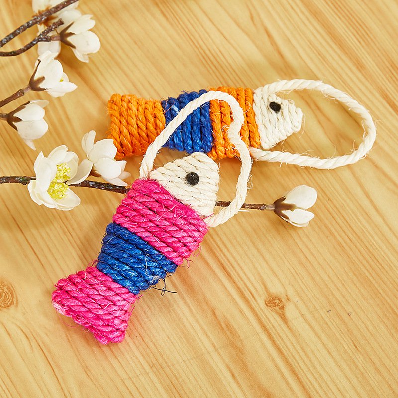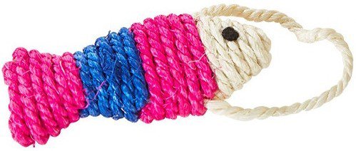 Zabawka dla kota w kształcie ryby - odpowiednia niezależenie od wieku Twojego pupila. Rybka pokryta spiralnie nawiniętym sznurkiem, dzięki czemu może służyć jako mała drapaczka. Klasyczna zabawka, zapewniająca kotu zajęcie przez długi czas i zaspokajająca jego łowczy instynkt. Bardzo lekka, idealna do podrzucania.