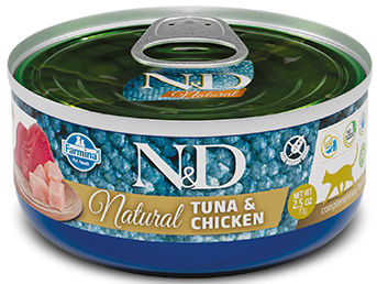 Skład: tuńczyk żółtopłetwy (50%), filet z kurczaka (20%), bulion rybny, bulion z kurczaka