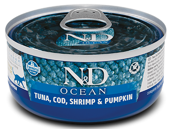 Skład: stek z tuńczyka (50%), filet z dorsza (10%), filet z łososia, dynia (5%), krewetka (5%), olej z ryb, tłuszcz zwierzęcy, ryż parboiled, fruktooligosacharydy, siarczan chondroityny, glukozamina, witaminy, minerały.
