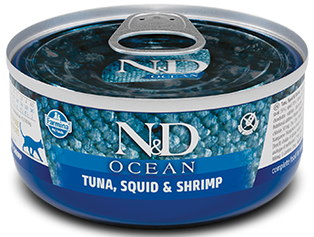 Skład: stek z tuńczyka (55%), sardynka (10%), krewetka (5%), olej z ryb, tłuszcz zwierzęcy, fruktooligosacharydy, siarczan chondroityny, glukozamina, witaminy, minerały.