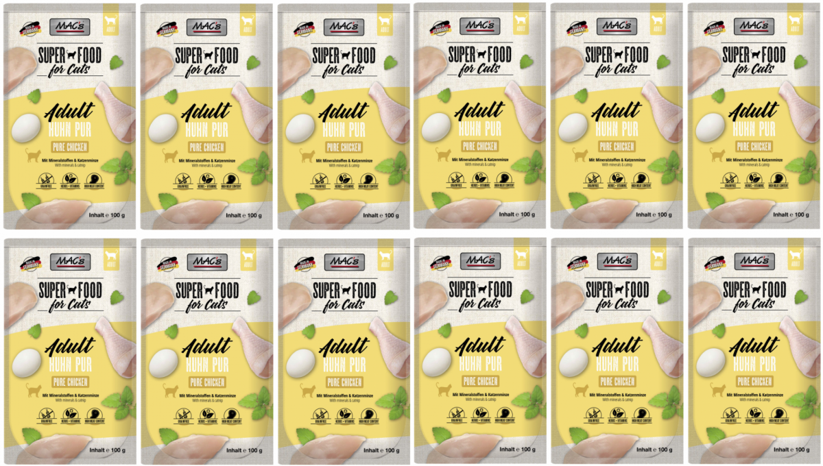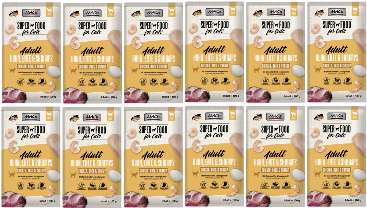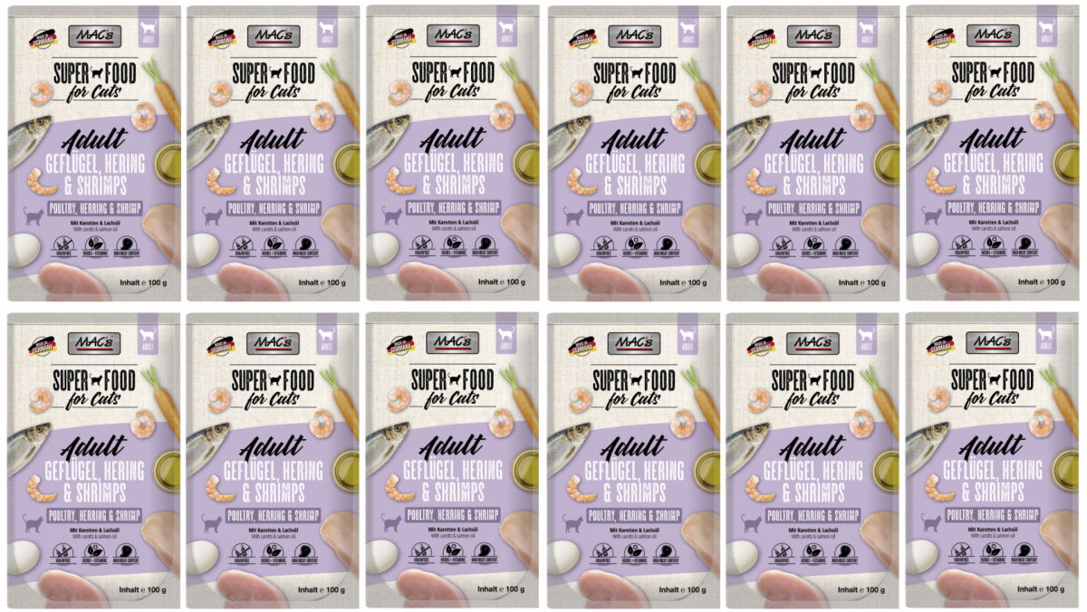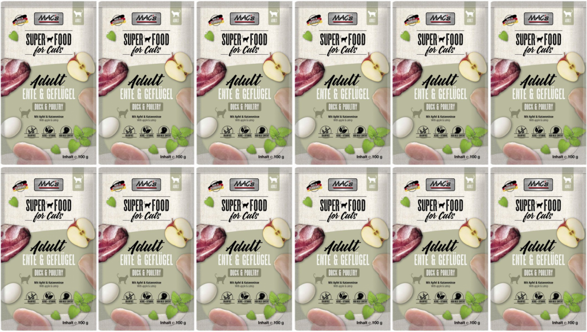 Karma mokra MAC´s Cat to wysokiej jakości pożywienie dla kota, które w szczególności nadaje się dla kotów o wrażliwym układzie pokarmowym. Przewód pokarmowy kota przyzwyczajony jest do diety opartej głównie na czystym mięsie. Karma zawierająca zboże często wywołuje nietolerancje pokarmowe u zwierząt. Z tego powodu, posiłki MAC's są całkowicie pozbawione zbóż i soi. Duża zawartość delikatnego mięsa (70%) zapewnia wyśmienity smak i wysoką akceptację. W karmie nie występują połączone kawałki mięsne, ani mączka kostna czy zwierzęca, jej wysoką jakość zapewnia najlepsze mięso z serc, wątroby czy płuc. Karma nie zawiera sztucznych barwników, aromatów, oraz konserwantów. Dodatek tauryny przyczynia się do wzmocnienia funkcji serca i wzroku. Witaminy i minerały ponadto wzbogacają zrównoważoną dietę Twojego kota.