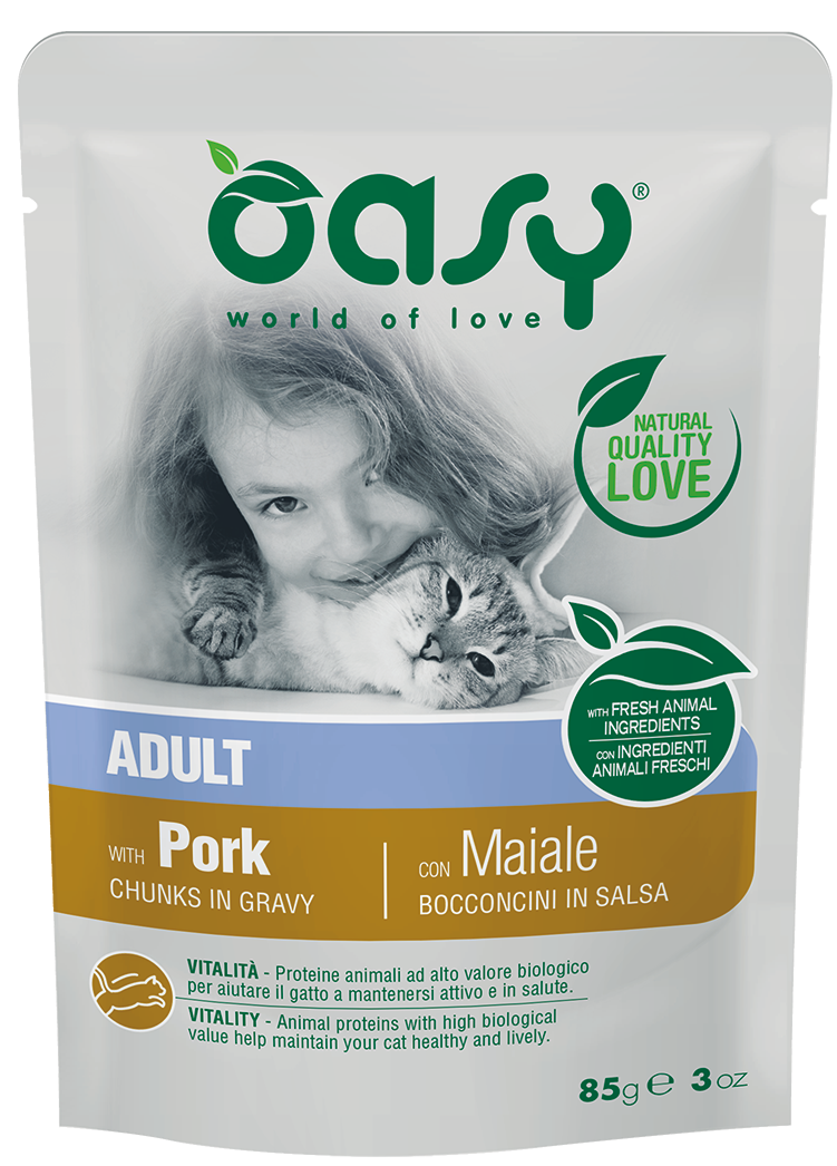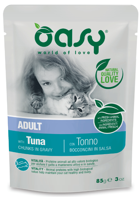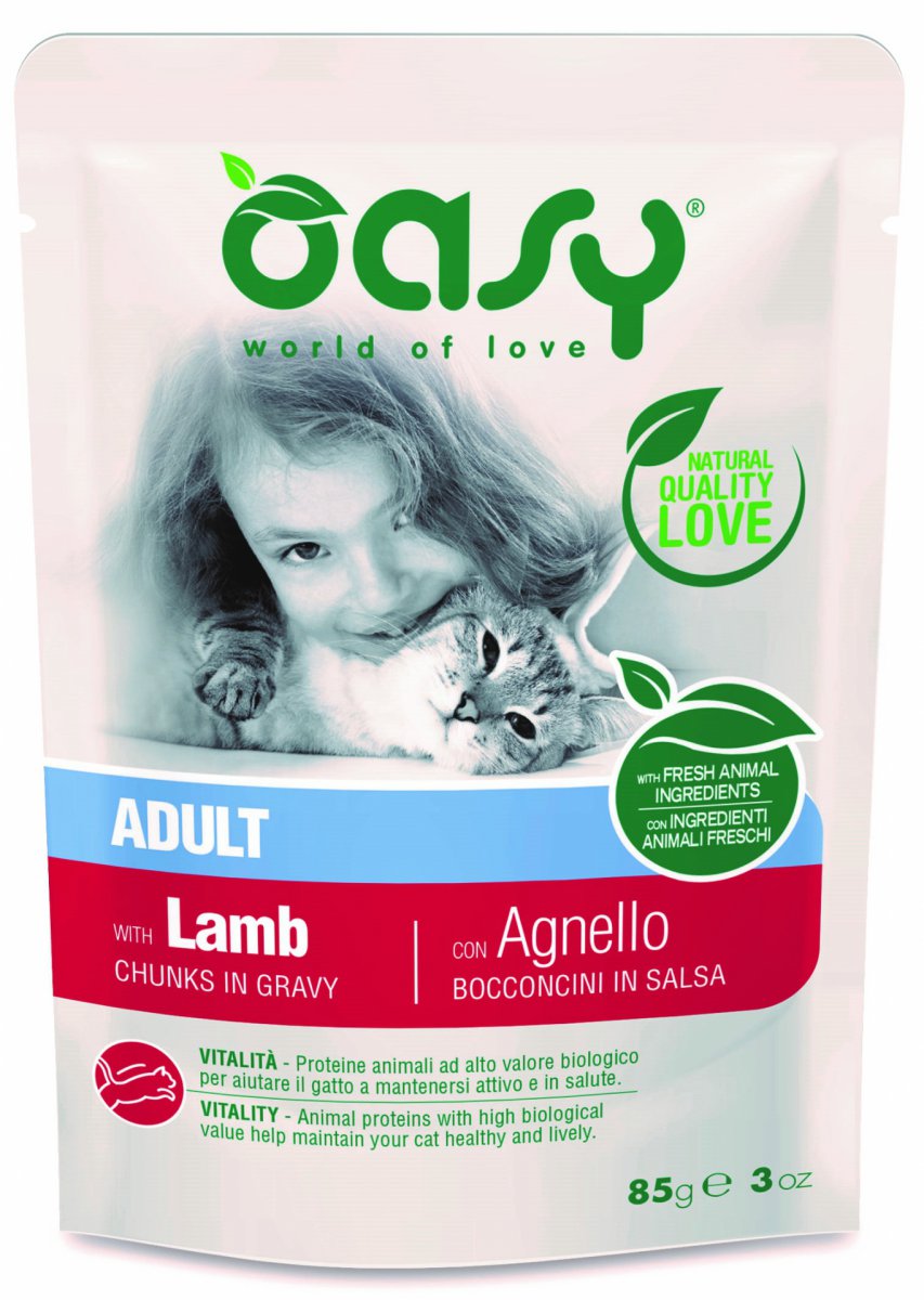 OASY lifestage, to delikatne kawałki w pysznym sosie, przyrządzone z naturalnych składników, ze świeżym mięsem. Receptury lifestage zostały opracowane w taki sposób, aby zaspokoić szczególne wymagania kotów, także ze względu na ich wiek. Nie zawierają sztucznych dodatków w postaci konserwantów, barwników. Nie zawierają również składników GMO ani soi.