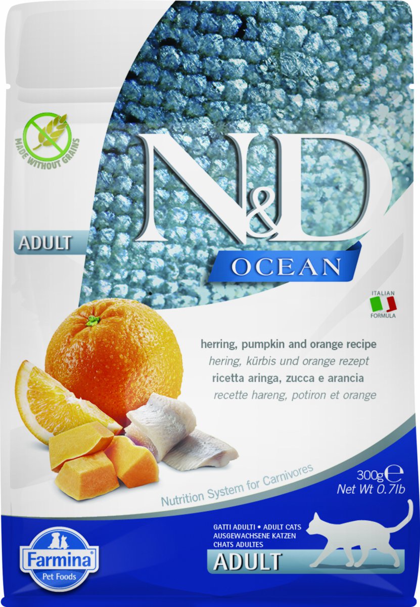 Receptura śledź, dynia i pomarańcza. Pełnoporcjowa karma dla dorosłych kotów.