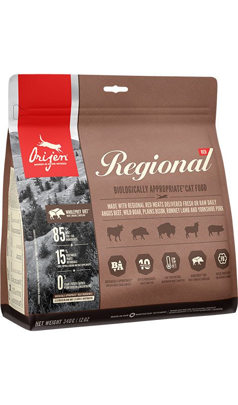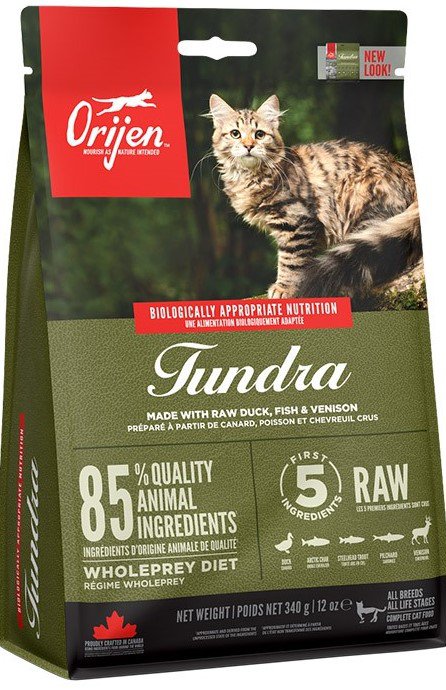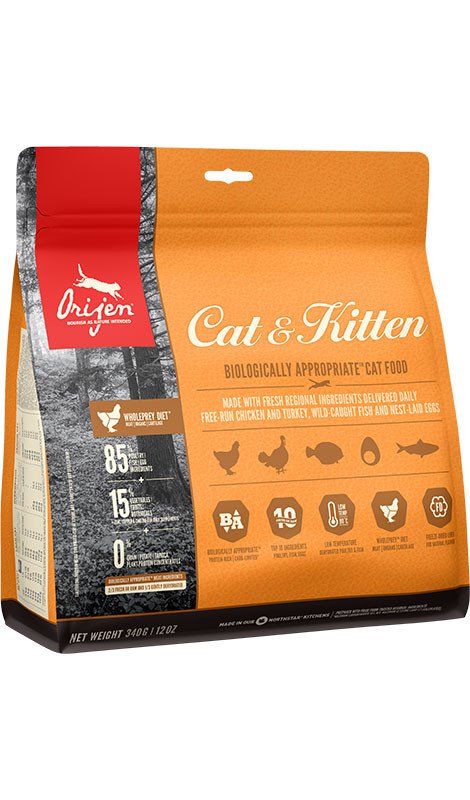 Jedzenie ORIJEN jest bogate w odżywcze białko i ma ograniczoną ilość węglowodanów. Odżywia koty i kocięta zgodnie z ich ewolucyjnym i biologicznym przystosowaniem.