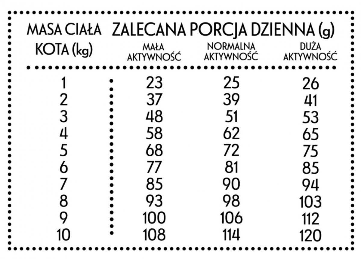 - PIĘKNĄ LŚNIĄCĄ SIERŚĆ – zapewnia dodatek oleju z łososia