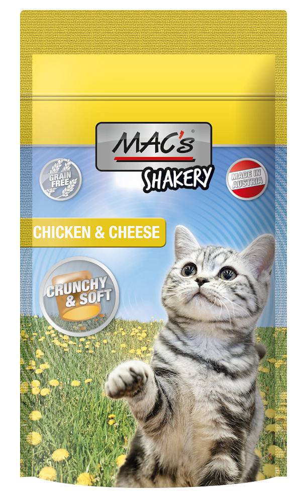 MAC's Shakery Snacks to doskonały przysmak dla kotów, który składa się z przepysznego nadzienia otoczonego chrupiącą otoczką. Smakołyk jest doskonałym źródłem substancji witalnych. Tauryna jest niezbędna dla prawidłowego funkcjonowania mięśnia sercowego i narządu wzroku. Ponadto pyszne kawałeczki wzbogacone są istotnymi witaminami, które podnoszą witalność organizmu.