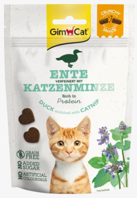 Skład: Mięso i produkty uboczne pochodzenia zwierzęcego (białko kaczki 38,8%), warzywa, produkty uboczne pochodzenia roślinnego, oleje i tłuszcze, kocimiętka, suszona (1,0%).