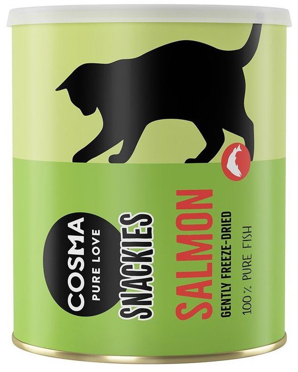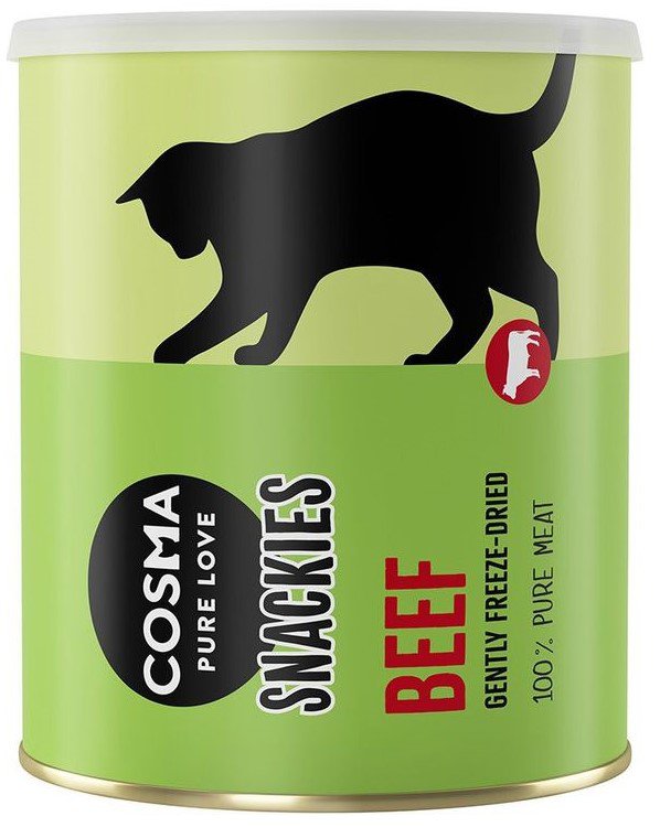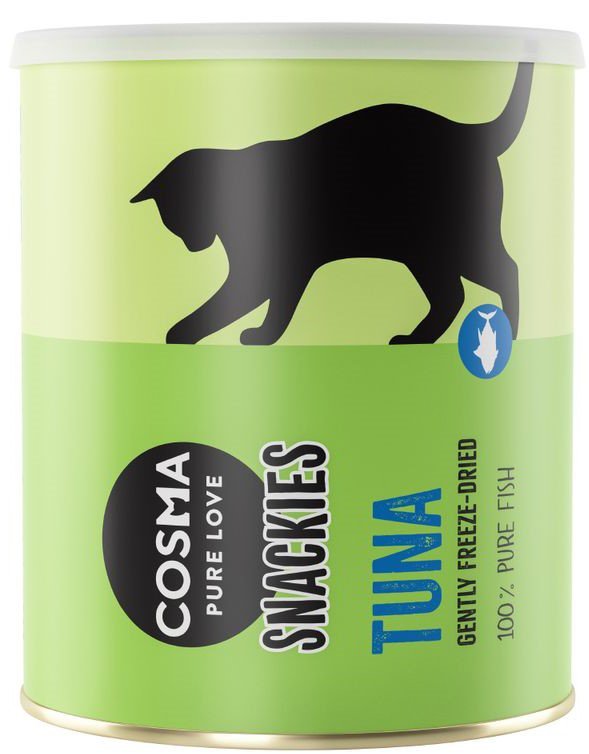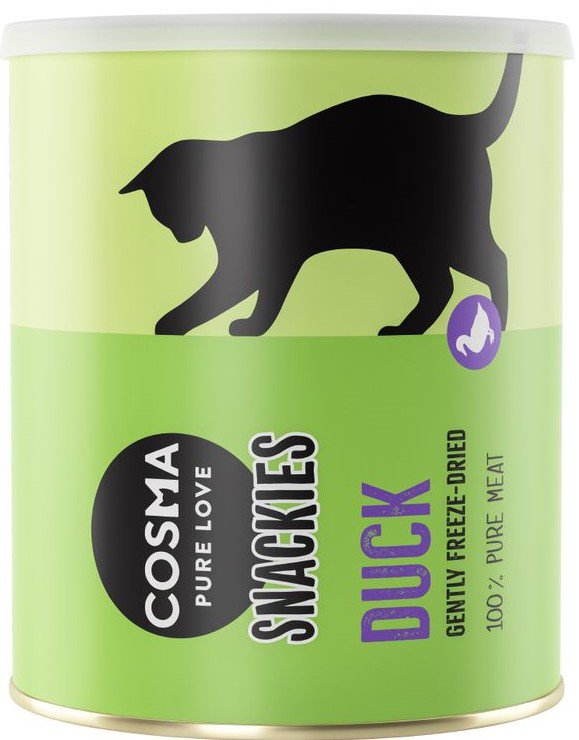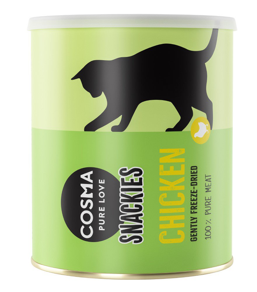 Przysmaki Cosma Original Snackies są oferowane w praktycznej, ponownie zamykanej tubie, przez co możliwe jest utrzymanie przez długi czas naturalnego i świeżego smaku.