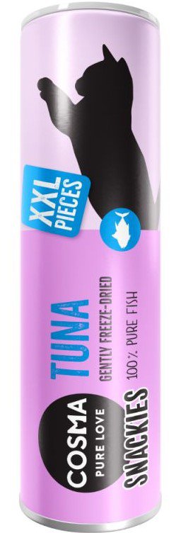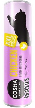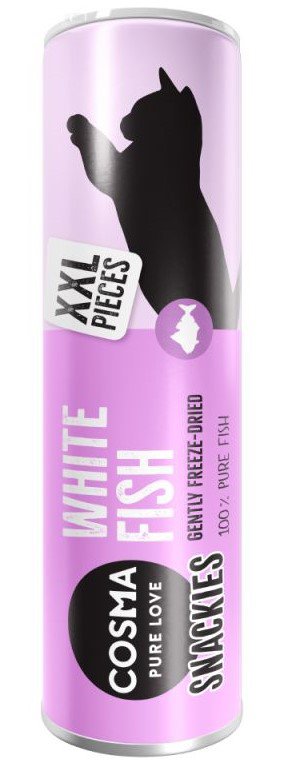 Suszone metodą mrożenia przysmaki Cosma Original Snackies XXL, składające się w 100% z mięsa albo ryby, są polecane przez lekarzy weterynarii oraz hodowców kotów, ponieważ są zdrowym smakołykiem, a dzięki naturalnemu smakowi cieszą się wyjątkowo wysoką akceptacją. Bardzo duże kawałki zapewniają wyjątkowo długą przyjemność. Są przeznaczone dla wszystkich kotów ras dużych.