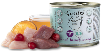 Pełnowartościowa, kompletna i znakomicie zbilansowana dieta nerkowa super-premium dla kotów. Powstała przy konsultacji dietetyków i lekarzy weterynarii w celu wsparcia leczenia chronicznej lub ostrej niewydolności nerek. Niska zawartość sodu i fosforu pomaga utrzymać równowagę metaboliczną organizmu, spowalnia postęp niewydolności i łagodzi objawy chorobowe. Obniżony poziom białka o wysokiej wartości biologicznej z najlepszych surowców odciąża nerki dostarczając odpowiedniej ilości energii i aminokwasów. Bataty są bogactwem beta-karotenu, który jest ważnym przeciwutleniaczem, są lekkostrawne, a przy okazji koją żołądek i jelita. Zawierając w swoim składzie witaminę-C i B-kompleks oraz żelazo i fosfor, są także doskonałym boosterem układu odpornościowego, a dzięki obecności w składzie – beta-karotenu, witaminy C i magnezu wykazują właściwości przeciwzapalne. Charakteryzują się niskim indeksem glikemicznym, więc proces uwalniania z nich energii jest powolny skutecznie regulując poziom glukozy we krwi. Dodatek cennego oleju z łososia wpływa na optymalną ilość kwasów tłuszczowych Omega 3 i 6 w odpowiednich proporcjach hamujących proces zapalny i wspomagających leczenie, a żurawina bogata w witaminy i minerały pomaga zapobiegać infekcjom dróg moczowych.