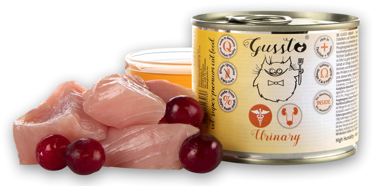 Pełnowartościowa, kompletna i znakomicie zbilansowana dieta super-premium dla kotów z kamicą moczową. Powstała przy konsultacji dietetyków i lekarzy weterynarii w celu wsparcia leczenia struwitowej kamicy moczowej. Niska zawartość fosforu pomaga utrzymać równowagę metaboliczną organizmu i łagodzi objawy chorobowe. Obniżony poziom białka o wysokiej wartości biologicznej z najlepszych surowców odciąża nerki dostarczając odpowiedniej ilości energii i aminokwasów. Duża wilgotność i optymalna ilość tłuszczu oraz zawarte kwasy tłuszczowe Omega 3 i 6 hamują proces zapalny i wspomagają leczenie. Dodatek DL-metioniny obniża PH moczu, a żurawina bogata w witaminy i minerały pomaga zapobiegać infekcjom dróg moczowych.