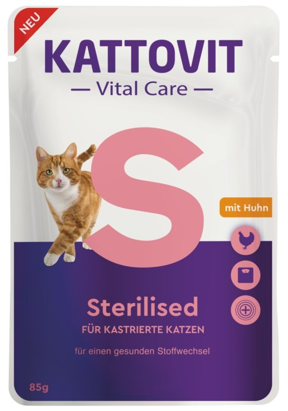 Karma pełnoporcjowa dla wykastrowanych kotów, pomaga w utrzymaniu zdrowych dróg moczowych dzięki substancji zakwaszającej (DL-metionina). Wspiera również utrzymanie prawidłowego metabolizmu Twojego kota.