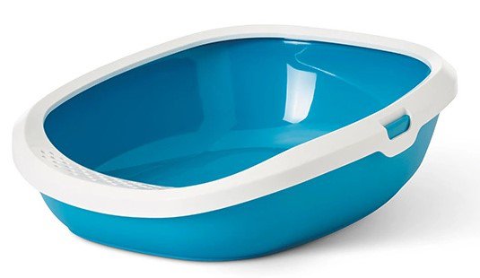Otwory w obręczy zapobiegają wypadaniu żwirku poza kuwetę podczas wychodzenia. Co więcej, podniesione oparcie zatrzymuje mocz i śmieci w środku, zapewniając czysty i uporządkowany obszar wokół kuwety. Gizmo ma niskie wejście, co sprawia, że jest odpowiednia dla młodszych, starszych i chorych kotów.
