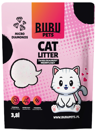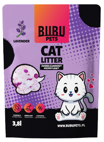 BUBU PETS to najbardziej przyjazny dla kotów i ich właścicieli niezbrylający żwirek silikonowy. Błyskawicznie wchłania on płyn i natychmiast pochłania nieprzyjemny zapach. Dodatkowo dzięki niemu utrzymanie czystości w domu, będzie niezwykle łatwe.
