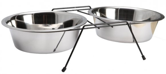 - Stojak wyposażono w metalowe nóżki, dzięki którym miski nie przesuwają się po posadzce w trakcie posiłku.