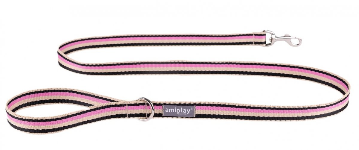 AmiPlay | Popular | Smycz dla psa miejska - paski czarno różowa