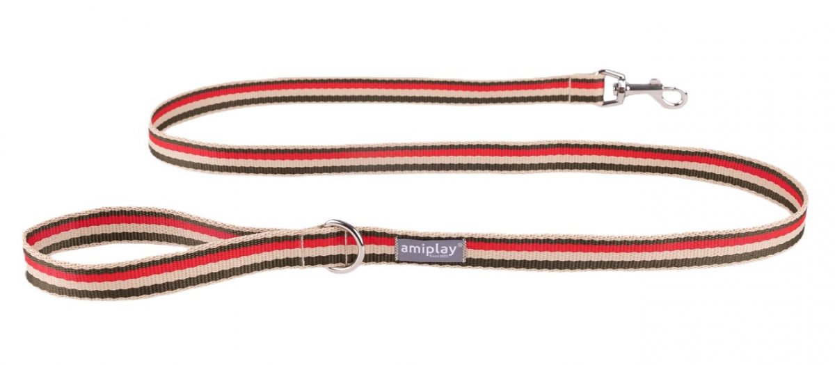 AmiPlay | Popular | Smycz dla psa miejska - paski czerwono oliwkowa