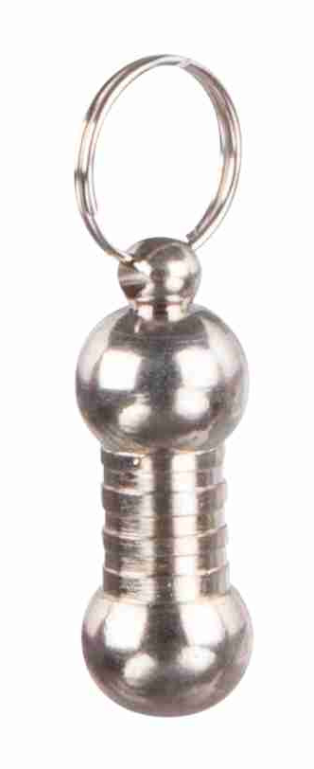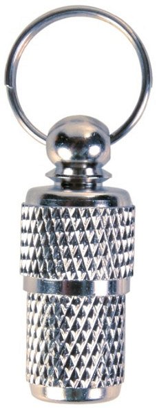 Wykonany z metalu identyfikator przyczepia się do obroży psa, należy w nim schować małą karteczkę z zapisanym adresem pieska oraz numerem telefonu właściciela.